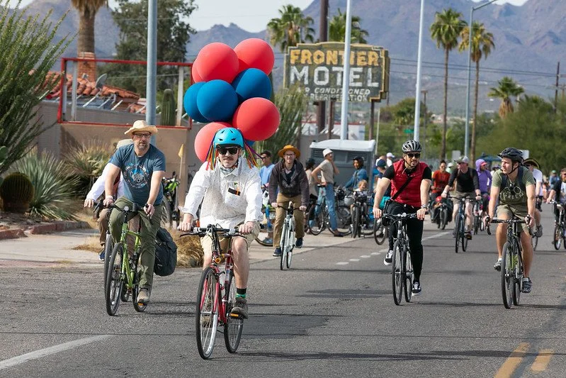 Find free health testing, performances, great food and live music under the shade of Pima Community College's covered parking lot. Local radio station KXCI will be spinning great tunes all day, which you can enjoy over Bolivian and Italian lunch, shaved ice, donuts, and a host of local beverages. Our title sponsor Arizona Complete Health will give free wellness checks such as mammograms, prostate screenings and diabetes testing, regardless of insurance. Celebrate local businesses and organizing by entering a world of fluttering dollar bills within ICCU's Green Machine and learn about supporting credit unions, tour a micro-home with The Homing Project, make yourself a bookmark and play games with Tucson Festival of Books. REI will be on site to tune up bikes for free, as well as giving away a kid’s co-op bike, and don’t forget to boogie over to Epic Bikes to score some free bike swag!